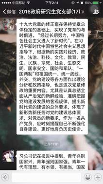 本次线上学习交流会由支部书记朱洁主持,借助移动交流平台的便利,党支部全体16名成员积极参与其中。朱洁表示,学习党的十九大报告,支部近期最重要的政治任务。对于报告精神的领悟,各位党员要内化于心,外化于行。学习交流的目的既在督促,又在提升。各位党员要深刻认识学习活动的意义,不断加深对于报告精神的学习与领悟。