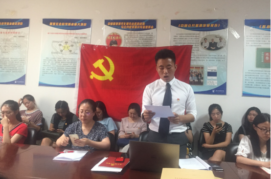 大会第二项,党支部书记李莎莉老师代表第一届支部委员会做工作报告。全面回顾总结第一届支部委员会的主要工作,简要介绍了支部总体概况,回顾了支部成立两年半以来的发展历程,汇报了支部在“人员精英化,活动精品化,工作精致化”的“三精”原则下支部工作情况及取得了成绩,并指出支部工作规范化有待加强,提出支部“规范化”建设年,包括党员发展和党员管理、支部自身建设及各类会议在内的三大模块13个方面的规范化建设。