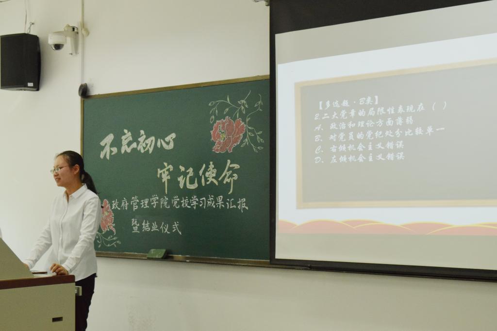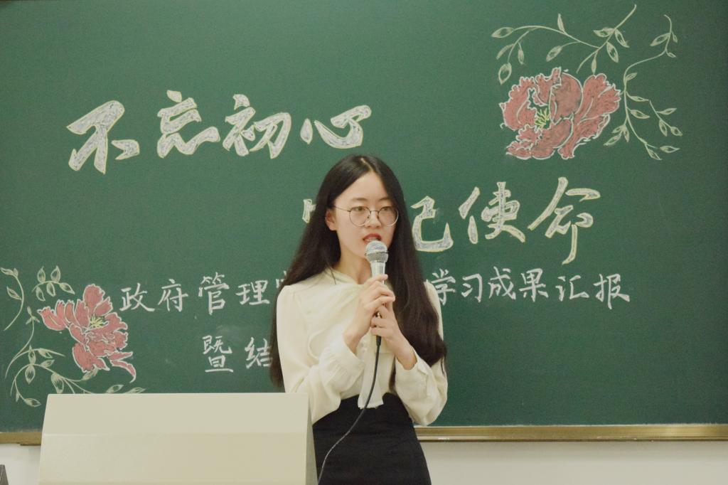 紧接着,姜玲副经理总结讲话。姜老师祝贺大家顺利完成党校培训,能在大学期间参加成果汇报会暨结业仪式是一件难得而又幸运的事,大家要珍惜此次机会,在磨砺和总结中提高自我的理论知识水平,锤炼党性修养。姜老师表示自己在短短的两个小时内,深刻感受到政管青年的蓬勃朝气,感受到大家在党校培训中真正做到实干实学、奋发有为。面对这批优秀群体,姜老师提出了更高的期望,一是要不忘初心、牢记使命,牢牢铭记实现民族复兴梦的历史使命和时代责任;二是要坚定理想信念,争取早日成为一名光荣的优秀共产党员;三是要继续保持和发扬优良作风,在生活中、在员工群体中发挥好先锋模范作用;四是要加强学习,联系时事热点学,联系专业领域学,实现互促互进,提高自己全面素质。