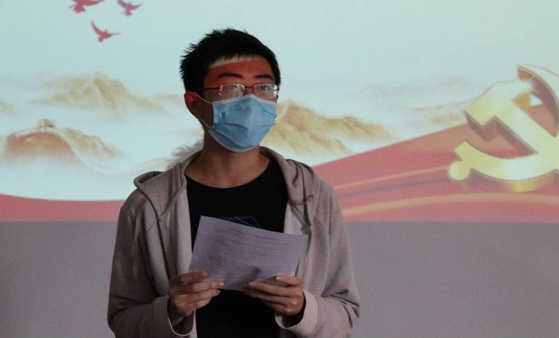 随后,学员代表陈翔骞同学发言。陈翔骞同学从此次新冠疫情说起,无数党员前往一线投入到抗疫过程当中,从中感悟到千千万万党员的使命与担当,并愈加坚定了自己加入党组织的决心。同时,陈翔骞同学表示有机会参加本次党校学习深感荣幸,一定会在此次学习中积极认真,努力学习,夯实自己的理论基础。陈翔骞同学真诚的发言引得同学们热烈的掌声,使同学们备受激励。