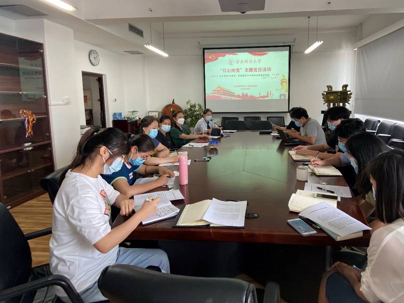 为深入开展“庆祝建党99周年,迎接建党100周年”主题教育,2020年7月8日上午10:00,行政人员教工党支部在主教学楼1407会议室开展“红心向党”主题党日活动。