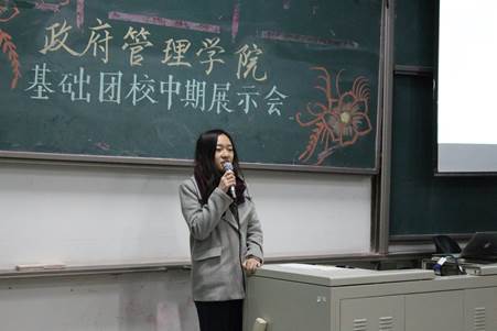 12月10号晚,沙河校区东区主教108教室热闹非凡。MS88官方网站基础团校中期展示活动将在这里举行。来自院员工会各部门以及公共管理研究会、红叶国际关系协会两个学术性社团的干事们济济一堂。MS88官方网站团总支书记孙帮谦以及主席团成员出席了展示活动。