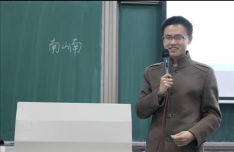 接下来发言的是校级一等奖获得者公管15班的胡逸驰,他以幽默的方式跟同学分享了自己的寒假社会实践经验。他调侃地说自己的主题是非主流,获奖出乎他的意料。他的主题是探讨南山南是如何的迅速窜红,虽然乍看上去没有什么可以研究的,但是深入其中发现大有可为。他认为在选题方面,同学们可以多跟自己的导师沟通,询问他们的意见,切忌选用可操作性不高的题目。在选好题目后,同学们一定要认真撰写报告,多翻阅相关论文,从中参考和借鉴,用心选题,用心排版。