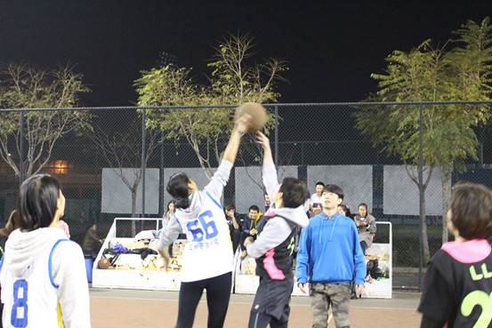 上半场结束,行管队以24:21的优势暂时领先。双方利用中场休息时间紧张地准备接下来的比赛,商量战略,不断热身投球。下半场一开始,队员们立刻进入状态,节奏加快,运球传球,毫不迟疑。观众们也被这紧张的氛围所感染,紧盯着赛场,为每一个队员助威,为每一个进球欢呼,再没有队伍的区分,有的只是技术的较量。最后10分钟,所有人的倾尽全力,纵使汗水已经打湿了上衣,但脚步从未放慢,姿势依旧标准!深秋的寒意终于被热情驱散,此时,每个人心中只有手中的篮球,不远处的篮板!当最后一秒结束,记分牌停留在44:32,行管队赢得了这次篮球赛的胜利!