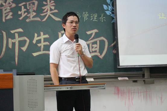 首先由城市管理系系主任王伟老师代表全系老师对同学们来到中财,来到政管表示衷心地祝贺与欢迎。接下来,他向同学们提出了一个问题,大学与高中最大的区别是什么?他做了一个比喻,高中学习如同在池塘里游泳,考上大学意味着游入了海洋,虽然面对一个更加广阔的世界,但却很容易迷失方向。所以王老师提醒同学们,在大学,最重要的第一件事情是方向感!为自己找到正确的方向,再通过脚踏实地,一步步实现人生目标。