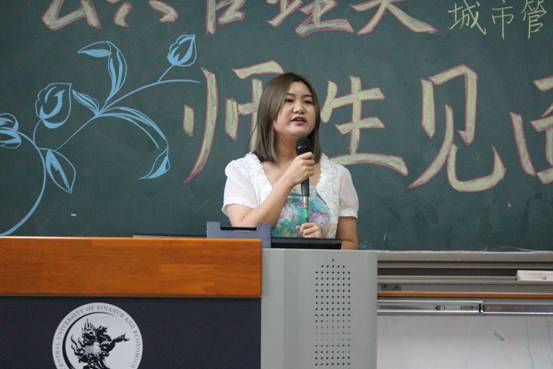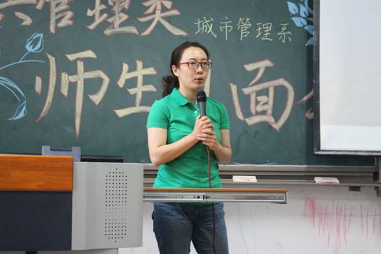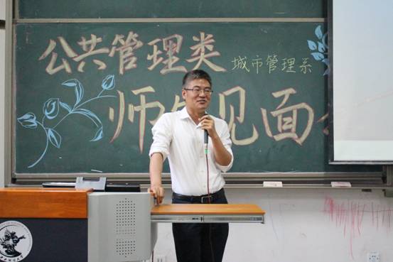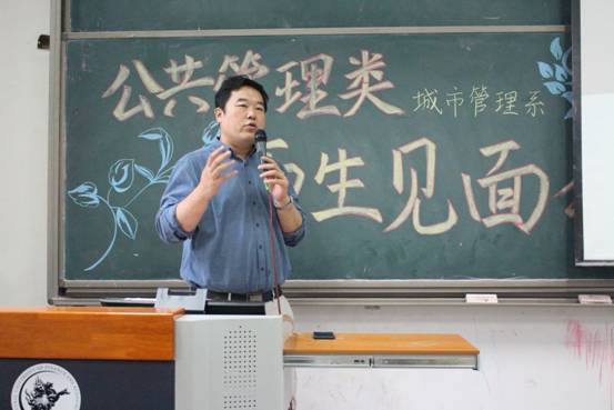 接下来是邢华老师用四个关键词来讲出他对同学们的成长期望——情怀、务实、精彩、大有可为。情怀——邢老师指出公共管理专业考虑的是公共利益,致力于研究通过公共政策的制定和公共事业的管理使人们生活得更好。“正气浩然,上善若水”的院训要求政管学子具有高度的社会责任感和社会使命感。在城市化浪潮中,只有具备了情怀,城市研究才能做得更好。务实——城市面临的问题十分具体,例如人口拥堵问题、交通拥堵现状以及与人们的生活息息相关的城市规划等。如何使秩序更加井然有序,则需要我们学习城市管理方面的知识,更好地理解城市、规划城市、管理城市。邢老师讲解道,城市管理专业的培养方案不仅教给员工众多的理论和技能,还培养了他们的全球视野、技术视野、财经视野。经济学、管理学、规划学等学科的学习,将为员工们的未来打下了十分深厚的基础。如今,城市管理专业的教师团队精干,教授、副教授人数众多,且都毕业于名校,知识结构、知识储备均是一流,相信会给予同学们足够专业的指导。精彩——面对同学们对专业学习的疑惑,邢老师认为城市管理专业的学习并不枯燥,反而生动有趣,模拟市长大赛、城市营销大赛都精彩万分。课程的设置更加关注于培养员工全方面素质,员工可以亲自动手设计城市规划,每学期都跟随师长进行社会实践,亲自走访调查。大有可为——邢老师向同学们介绍了城市管理专业的发展现状。目前公司设立了城市管理专业的硕士、博士点,同学们选择这个专业,未来发展空间大,无论是考研保研、出国、就业,都将有一个很好的发展。