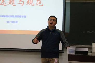 随后,资源管理与环境管理系副教授柴铎老师为同学们介绍老员工科研竞赛研究与选题规范。讲话伊始,柴老师提醒同学们不必囿于死记书本内容,而是要把握好大学学习节奏,通过参与各类学术竞赛沉淀自己。接着,柴老师简要阐述三项大赛的适合对象、考察侧重点以及内在联系,并对三项大赛的衔接关系提出了建议。柴老师重点强调选题与参赛的技巧:选题原则包括战略性、全局性、新颖性、针对性;选题来源于教师命题、课堂学习、日常积累及国家政策;选题应慎入过热、过大、争议、虚拟的误区;调查研究注重实证研究与规范研究相结合,切忌方法泛滥;文本撰写时主题明确,主线清晰,框架严谨,论据充实,论证有力,格式美观规范,语言流畅而富有学术性。柴老师的讲话干货满满,与会同学受益匪浅。