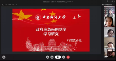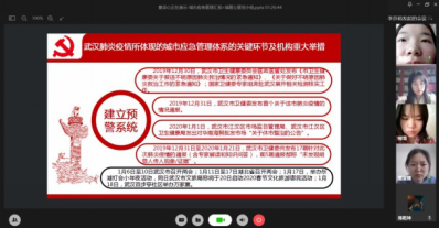 在党小组汇报环节,3个党小组结合公共管理专业特色,同时也进一步深入学习贯彻党的十九届四中全会精神,思考疫情中的国家治理体系和治理能力现代化