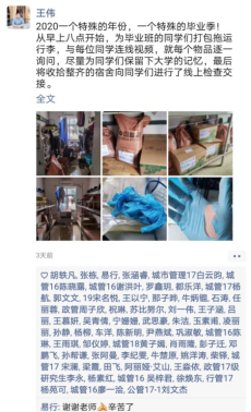 一个特殊的毕业季,一个特殊的毕业“寄”,公司用这种特殊的方式为毕业生送别,这一份份的行李中饱含了同学们老员工活的青葱回忆,饱含了老师们的温馨祝福。“云中谁寄锦书来,雁字回时,情满中财!”当包裹送达之际,大家与中财大的羁绊和情谊将会回响在中财大上空,深沉,而长久。