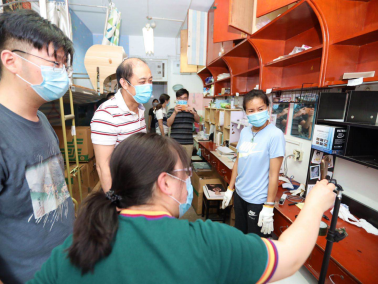 7月4日,大件行李的打包及邮寄工作紧锣密鼓地有序开展。打包组教师每三人一组,对接七到八名毕业生,保障组为老师专门配备了三脚架、称重秤、打包攻略、邮寄说明以及工具包等相关材料,以“细心、细致、细微”的理念做好每一个员工的行李打包工作。“别着急,老师一定会帮你打包好”、“有什么要求尽管和老师提”、“老师一定会尽力帮你找到”……打包组老师与每位毕业生开启视频连线,与员工进行充分沟通,在员工的远程导航下,精准定位每件物品,反复确认,精心整理、归类、装箱。有些老师年近古稀,腰椎不好,仍不断蹲在地上十几分钟,只为找一件员工忘记放在哪儿的物品;有些老师放弃陪伴年幼的孩子,积极参与打包工作;有些老师对员工的每件物品都无比珍重,细致入微的进行包装……阳光透过窗栅闪烁在老师们额头的汗珠之上,斑驳的身影与纷飞的灰尘交织成虚柔不盈的定格画面。