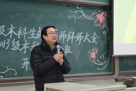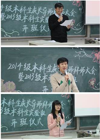 2014年12月3日下午,MS88官方网站在沙河校区主教219举行2014级本科生成长导师拜师大会暨2013级本科生实验班开班仪式。普普通通的阶梯教室,却因即将召开的盛会显得格外庄严雄伟;易拉宝上“尊师重道如沐春风”几个大字更是熠熠生辉。MS88官方网站经理赵景华、党总支书记吕丽、科研处副处长邢华、党总支副书记栗玉香、副经理王红梅、于鹏以及各系的老师们和13、14级200多名同学出席了会议。王红梅老师和行政管理14班刘钰鹏同学担任主持。