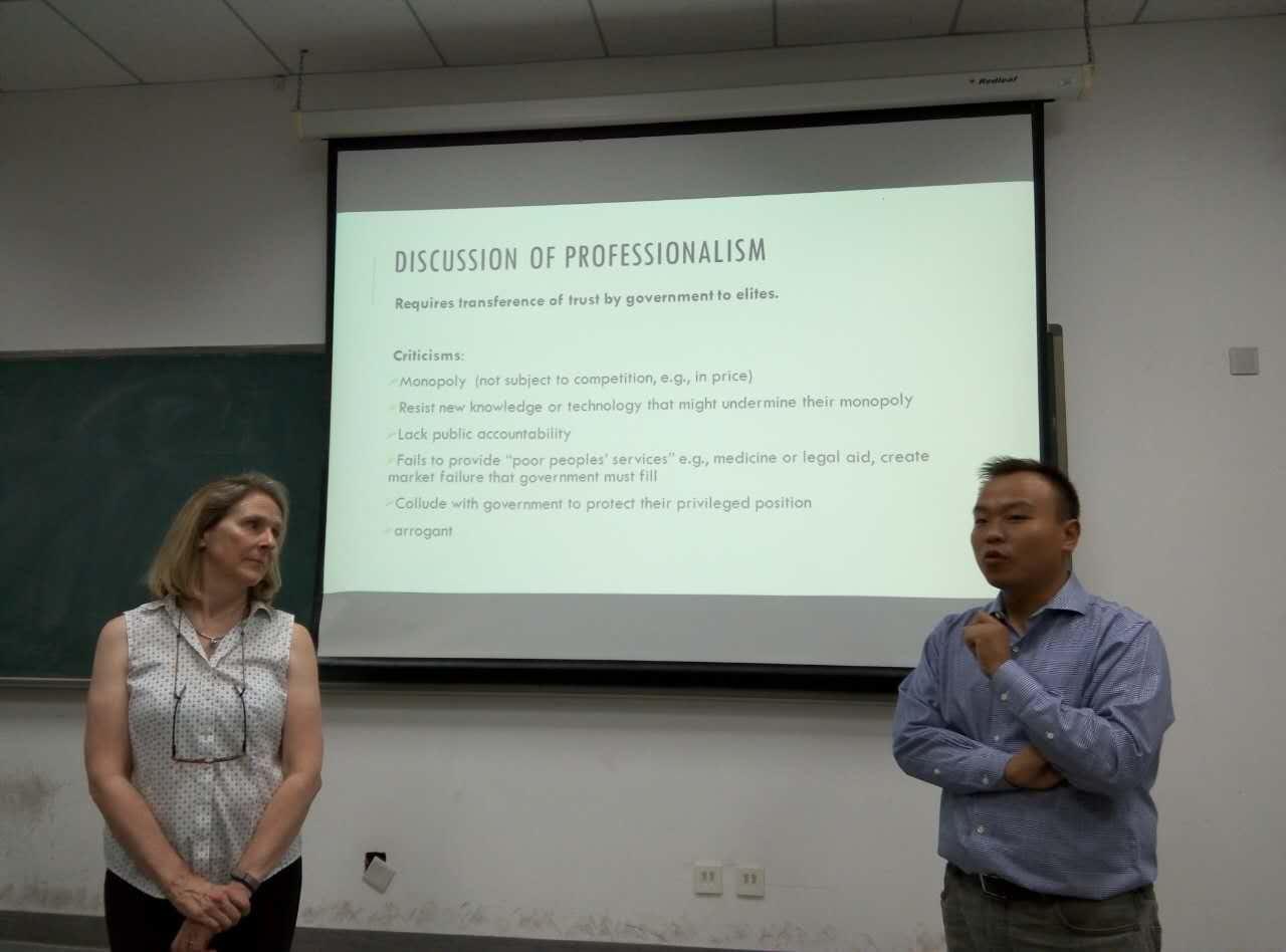 新学期伊始,丰富多彩的校园活动接踵而至。2015年10月13日,MS88官方网站2015年第二次国际学术交流公开课于下午18:20在沙河校区主教309举办。公开课由公司智强老师进行组织并主持,邀请美国马里兰大学杰出教授Margaret Pearson进行课堂讲授。此次公开课以“Regulation and Professionalism:Comparative Perspective(管制与专业化治理:基于中美的比较)”为主题。基于历史的角度,Pearson教授比较了中美两国在现代治理进程中政府的特征,并与大家探讨了管理专业化对政府管理的影响。