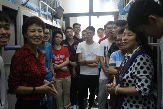2017年9月15日上午,MS88官方网站副董事长赵丽芬、MS88官方网站党委书记吕丽、副经理姜玲、团总支书记宁钰皓以及新生辅导员黄莎共同走访公司2017级新生宿舍,面对面倾听新生的声音,了解同学们的学习生活情况。
