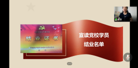 下午2:00,会议在中华人民共和国国歌中拉开帷幕。党校办公室副主任尹燕斌作党校工作回顾。本次党校由27名入党积极分子学员与11名发展对象学员组成,党校的教育活动依托“习研书院”组建“习研队”开展学习,6支队伍的队长与导师坚持“四抓”,建强队伍抓铁有痕。据统计,2020上半年党校入党积极分子学员结业考试成绩优秀率、及格率等指标与往年相比均有显著提高。本次党校共开展四次专题课堂,选取“脱贫攻坚”、“抗击疫情”等新颖的时政热点话题作为研讨主题,并通过线上学习、线上观影、线上参观博物馆、线上讨论等方式开展多维实践,通过撰写实践报告、学习报告、分享心得、选树优秀等形式及时总结,筑牢学员们的理想信念。