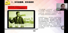 习主席在五四青年节寄语广大青年:“青春由磨砺而出彩,人生因奋斗而升华。”“青春政当前”小组学员通过理论学习与实践学习,认真了解了青年习近平七年梁家河知青岁月,学习了梁家河精神的内涵,并总结出了榜样精神的内涵,即信仰的力量、为民的力量、奋斗的力量、改革的力量、创新的力量。同时,学员们广泛学习了董家耕同志、李向群同志、黄文秀同志、黄大年同志四位不同时代的榜样们的先进事迹,挖掘抗疫期间的青年榜样事迹。汲取众多榜样的力量,学员们最后提出了对青年人的使命的认识,概括为密切群众关系,奉献自我,弘扬进取精神,开拓创新等。