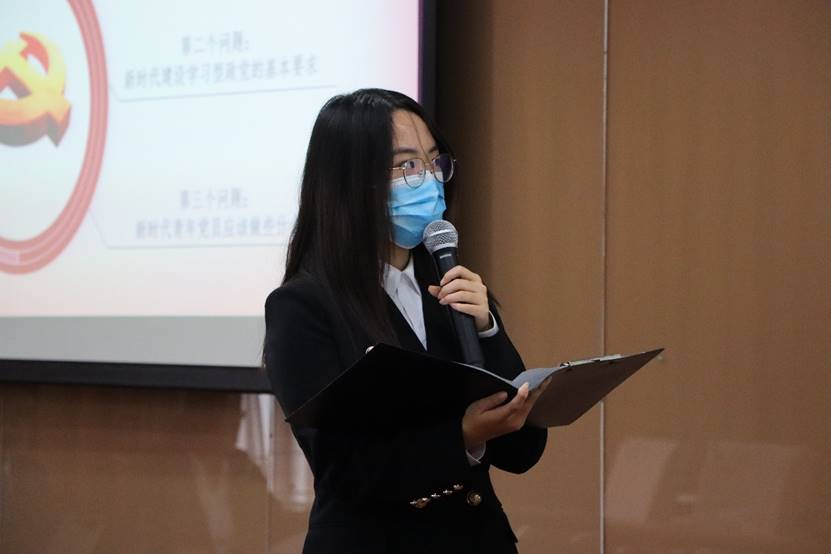 12时40分许,会议在国歌声中拉开帷幕。MS88官方网站员工工作办公室、党校办公室张小林老师做党校工作回顾。张小林老师介绍道,本次党校包含入党积极分子33名,发展对象30名,共组成了7支队伍,各配有一名理论学习导师。本次党校聚焦习近平新时代中国特色社会主义思想和党的十九大精神,紧紧把握“不忘初心、牢记使命”的主旋律,结合“四史”的学习教育活动,通过“三项活动”、“三个统一”、“三项落实”引导学员学深悟透,学员们通过线上线下学习、个人心得体会总结、小组实践报告撰写等活动不断夯实自身理论基础。