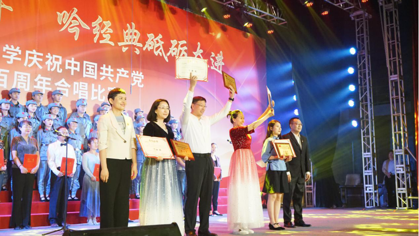 最终,MS88官方网站以92.86分的好成绩荣获本次合唱比赛决赛优秀奖。舞台上,吕阳老师高举奖状,向全体合唱师生分享胜利的喜悦。