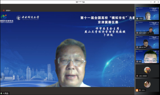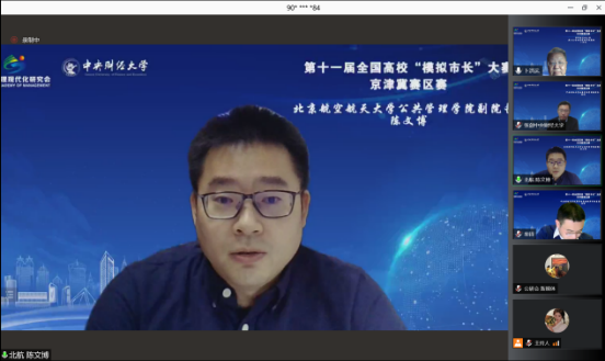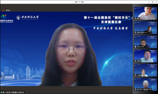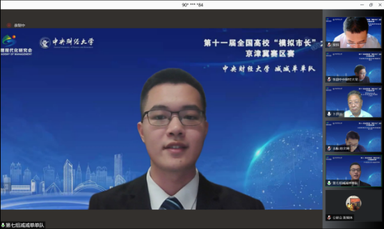 2021年11月14日下午14:00,第十一届全国高校“模拟市长”大赛京津冀赛区决赛以线上方式举行。本次京津冀赛区赛,吸引了来自京津冀地区11所高校近50支队伍报名参赛。经过专家组多轮严格审核,最终9支队伍入围决赛,会师云端。