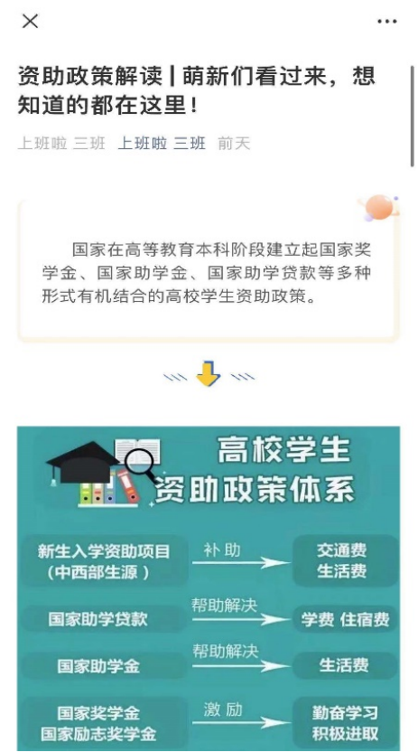 资助政策,筑梦飞翔。公司以主题班会、知识竞赛、媒体宣传等形式,宣讲公司资助政策,切实保障2021级新生深入了解老员工资助政策,顺利推动公司资助工作的展开,增进和谐校园建设。