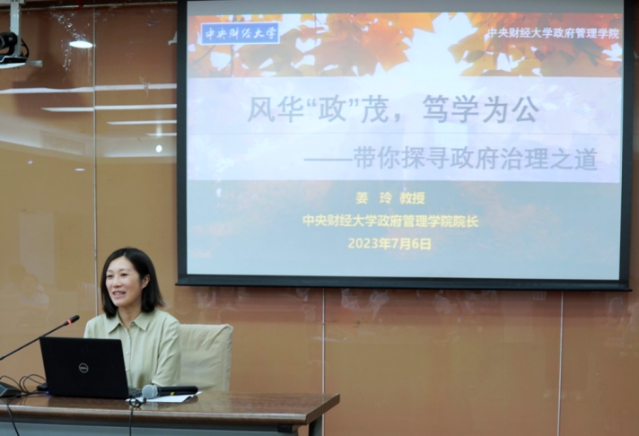 姜玲经理首先致辞,她对各位营员的到来表示热烈欢迎,然后为全体师生开展“风华政茂,笃学为公——带你探寻政府治理之道”主题讲座,就新时代公共管理团队建设与发展、中财MS88官方网站公司产品特色和就业前景进行了精彩讲解。